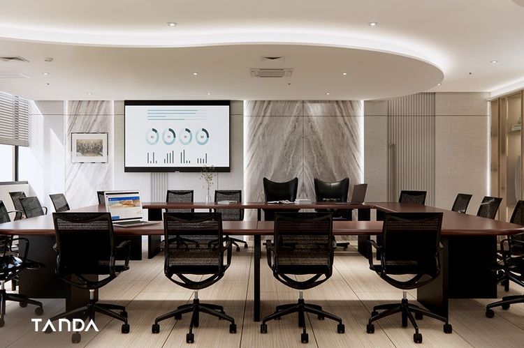 ควรเลือกสีโทนกลาง เช่น สีเทาอ่อน หรือสีขาวครีม เพื่อสร้างบรรยากาศที่เป็นทางการแต่ไม่รู้สึกอึดอัด แสงไฟควรใช้ไฟ LED ที่ให้ความสว่างนวล ไม่แสบตา และเฟอร์นิเจอร์ควรเป็นโต๊ะประชุมขนาดพอดี พร้อมเก้าอี้ที่รองรับท่าทางการนั่งนานๆ เพื่อให้ประชุมเป็นไปอย่างราบรื่นและมีประสิทธิภาพ